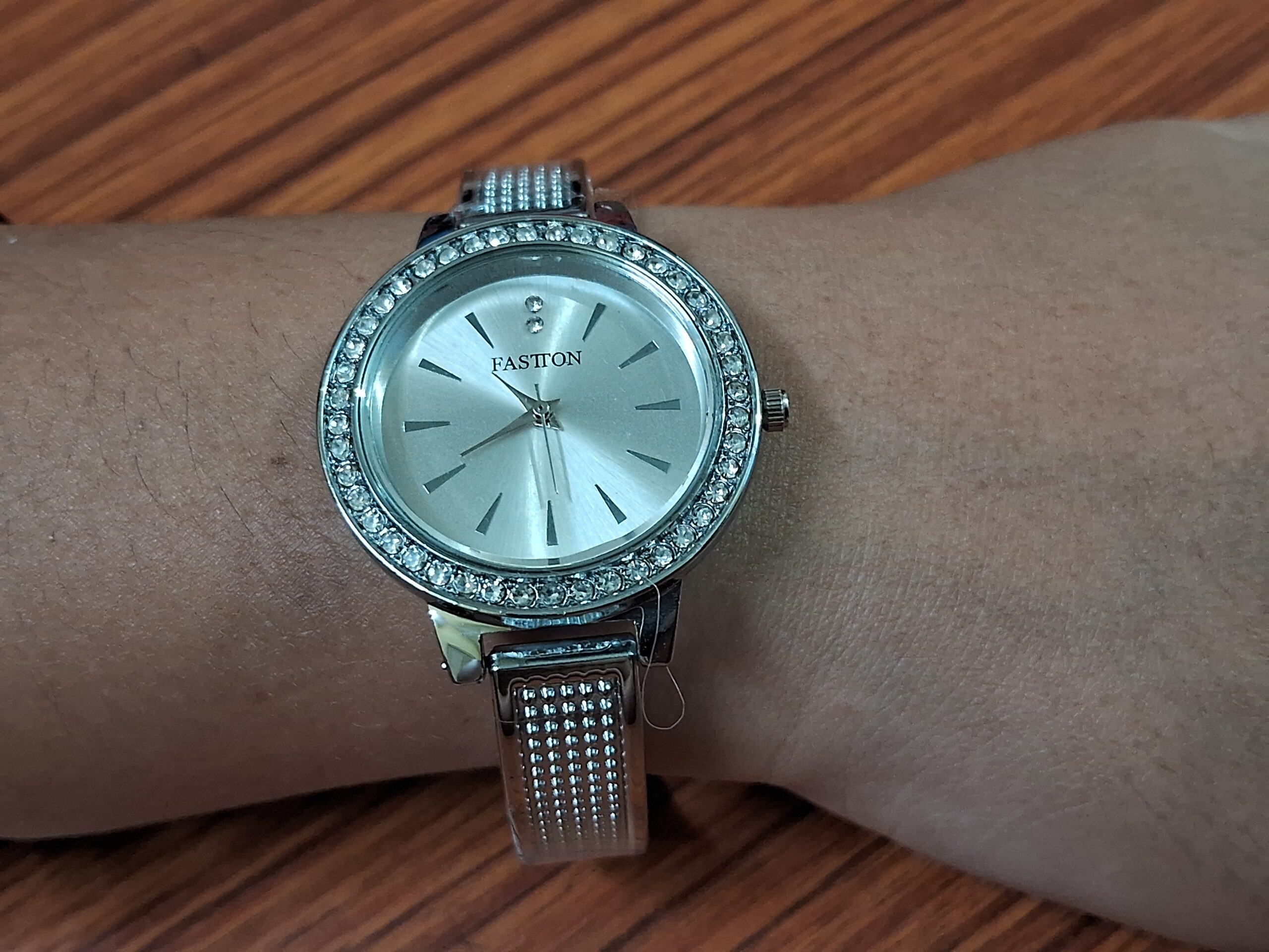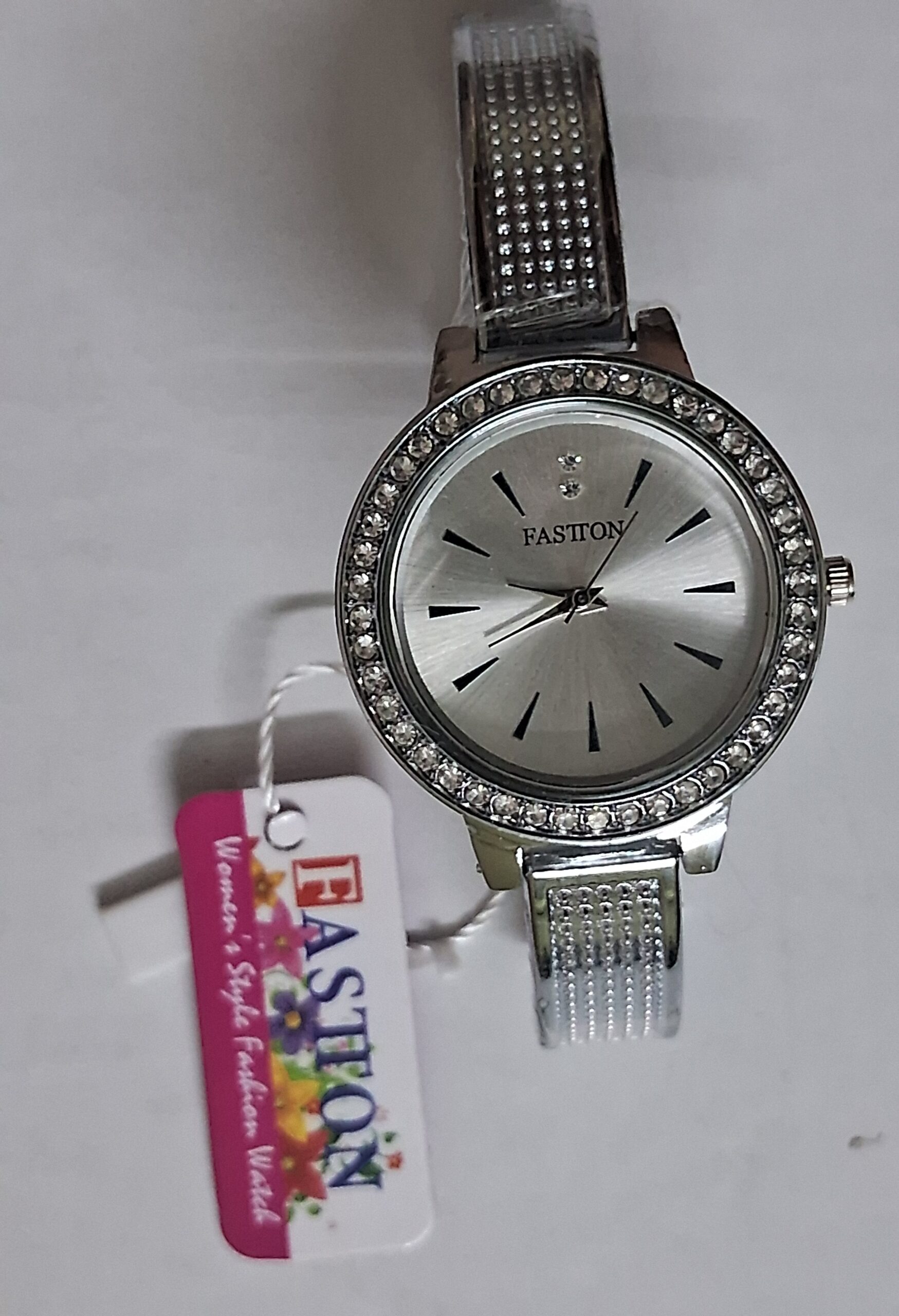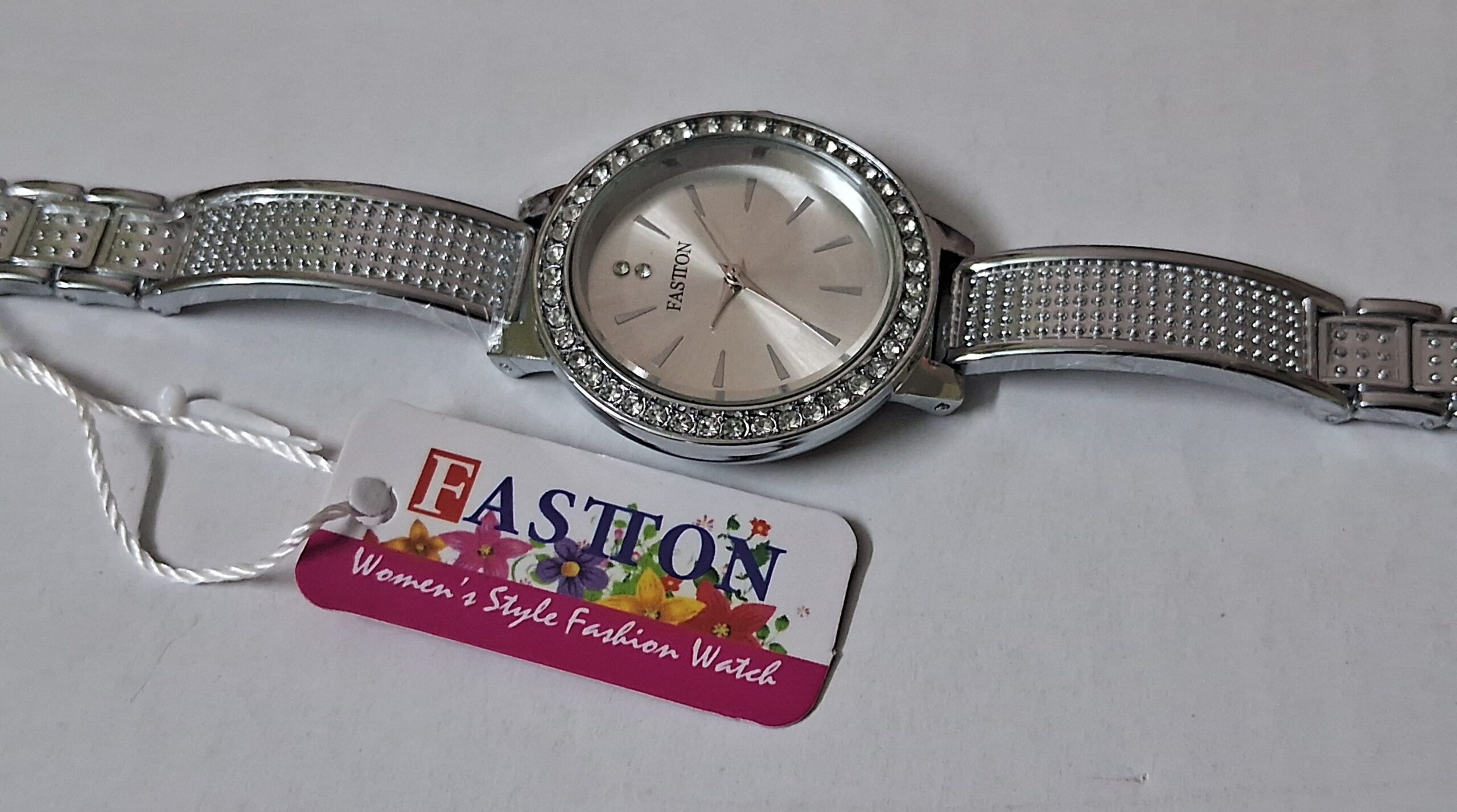 Product Title – Analog Wrist Watch for Women |Round Stainless Steel Silver Dial White Stone Fit