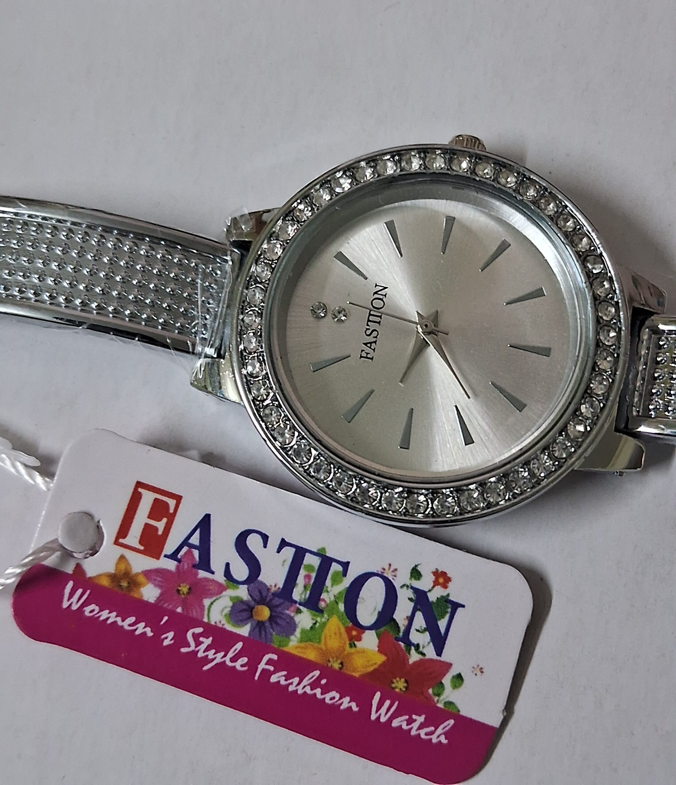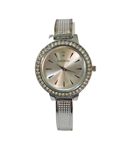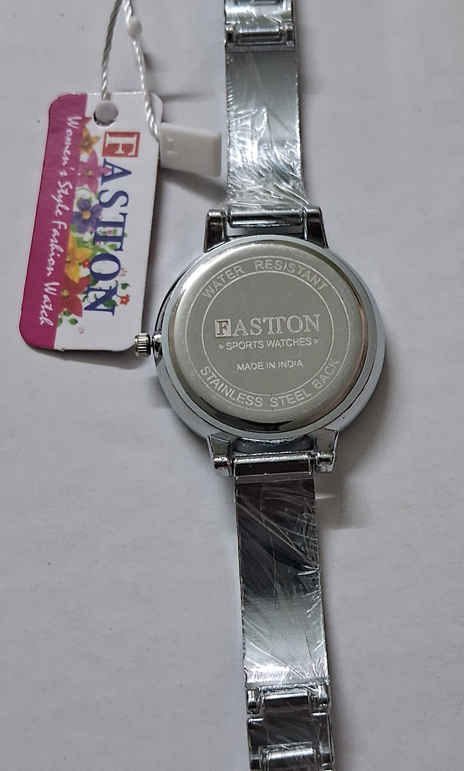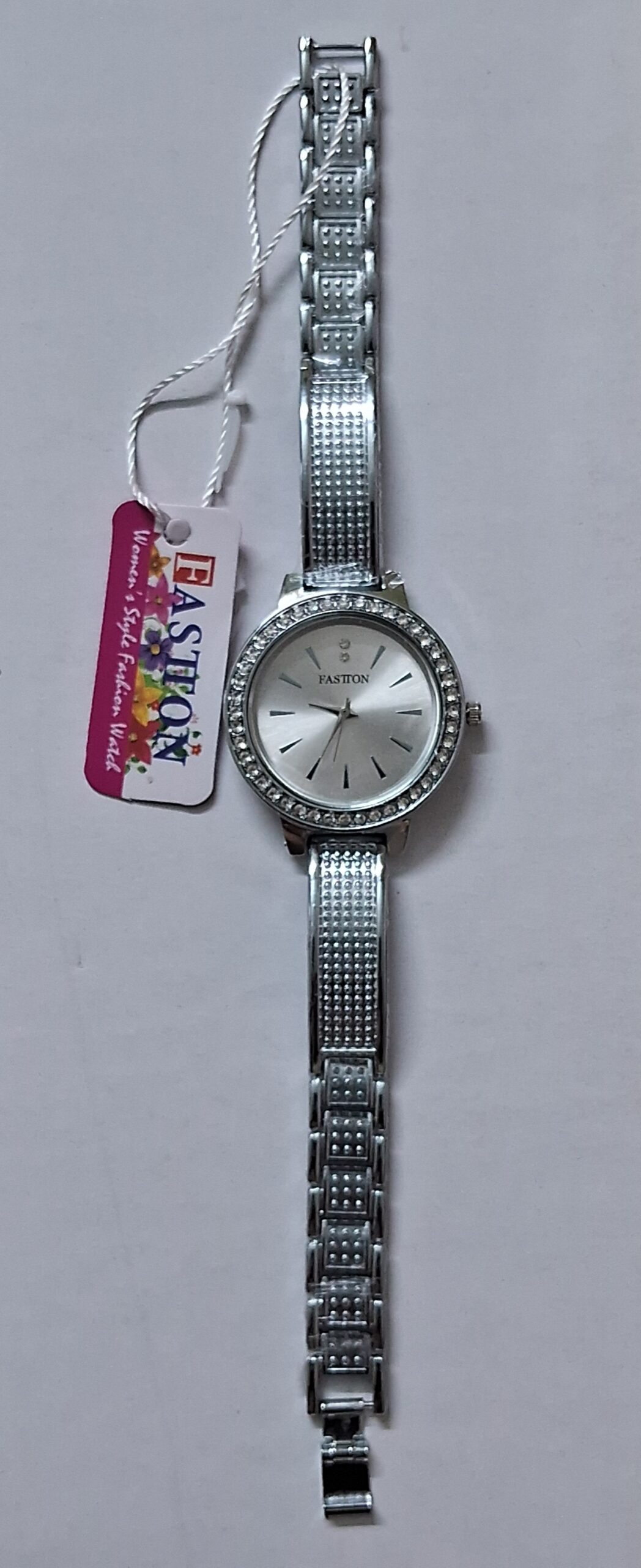 Product Title – Analog Wrist Watch for Women |Round Stainless Steel Silver Dial White Stone Fit