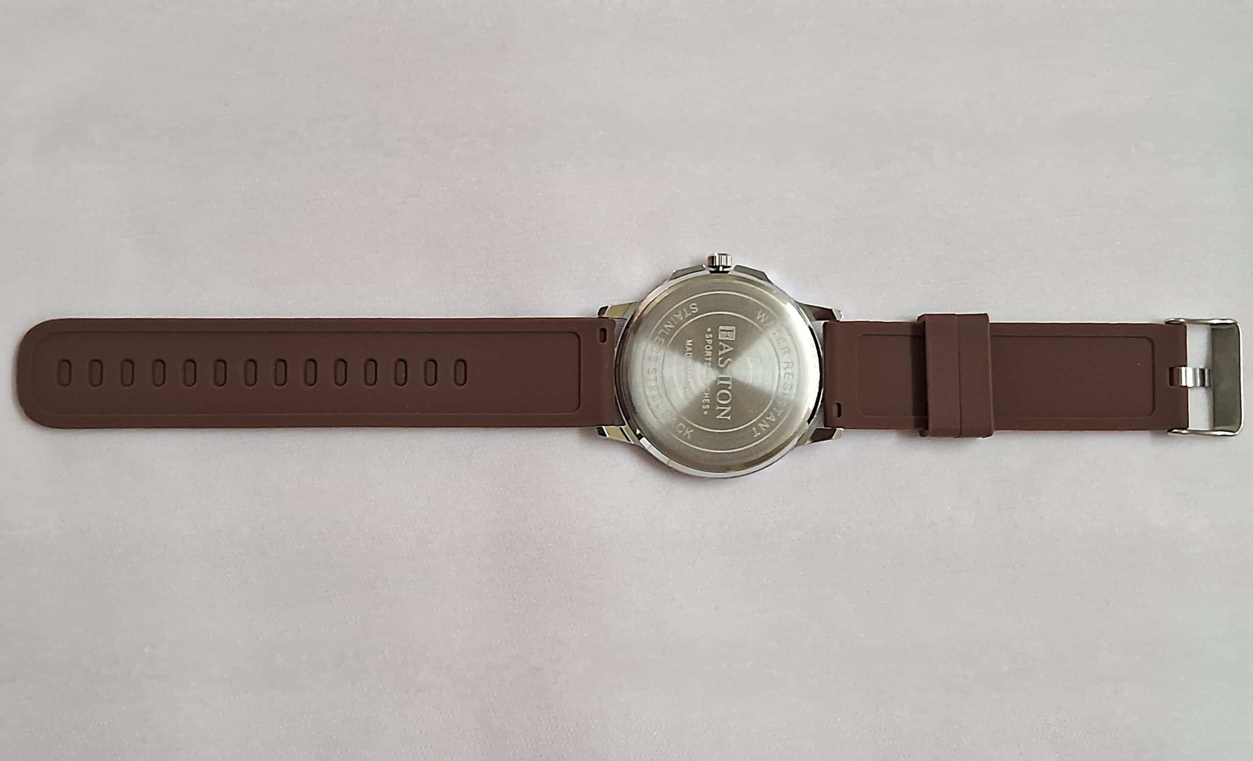 Neutral brown strap and silver case complement any outfit.