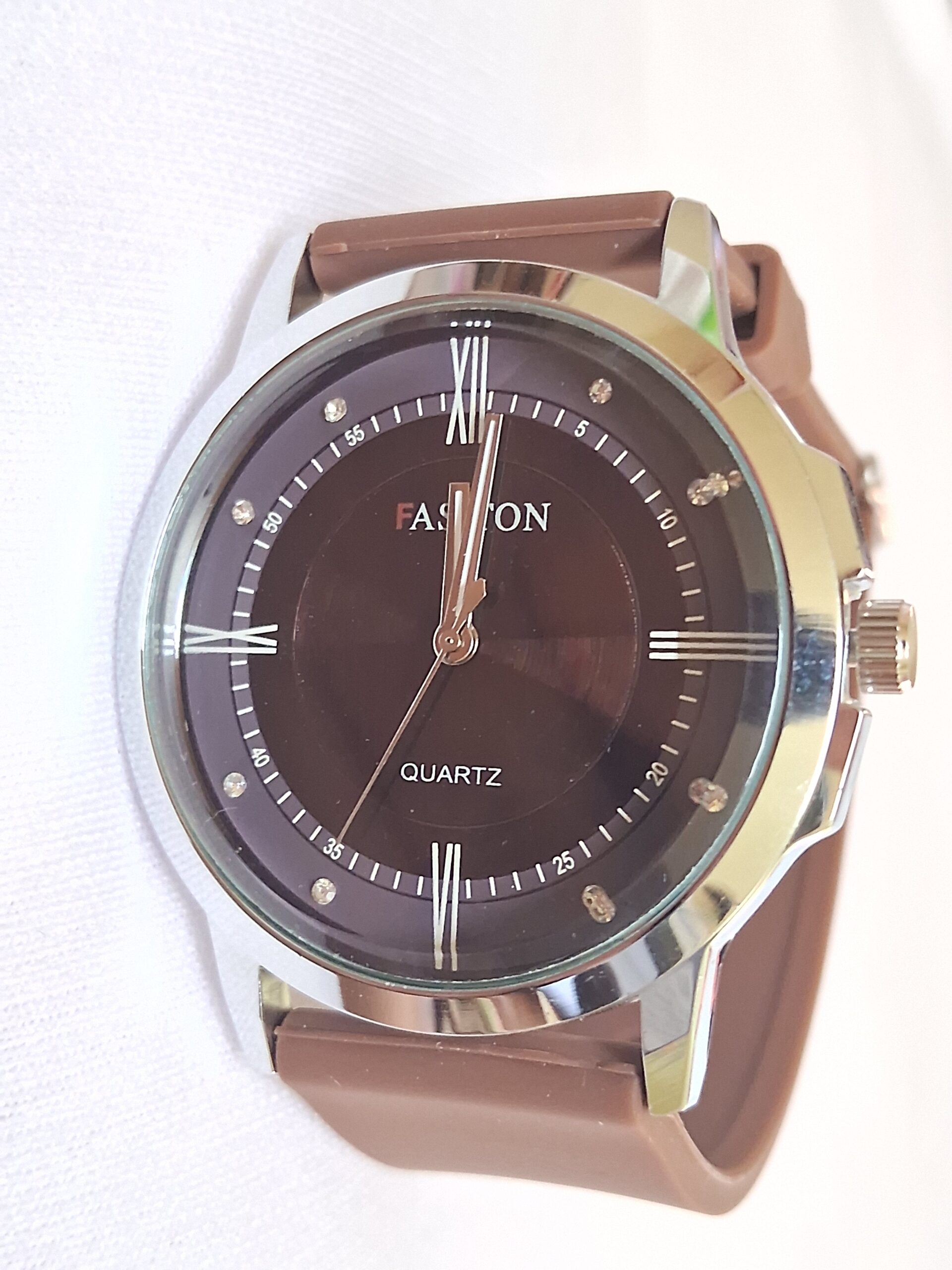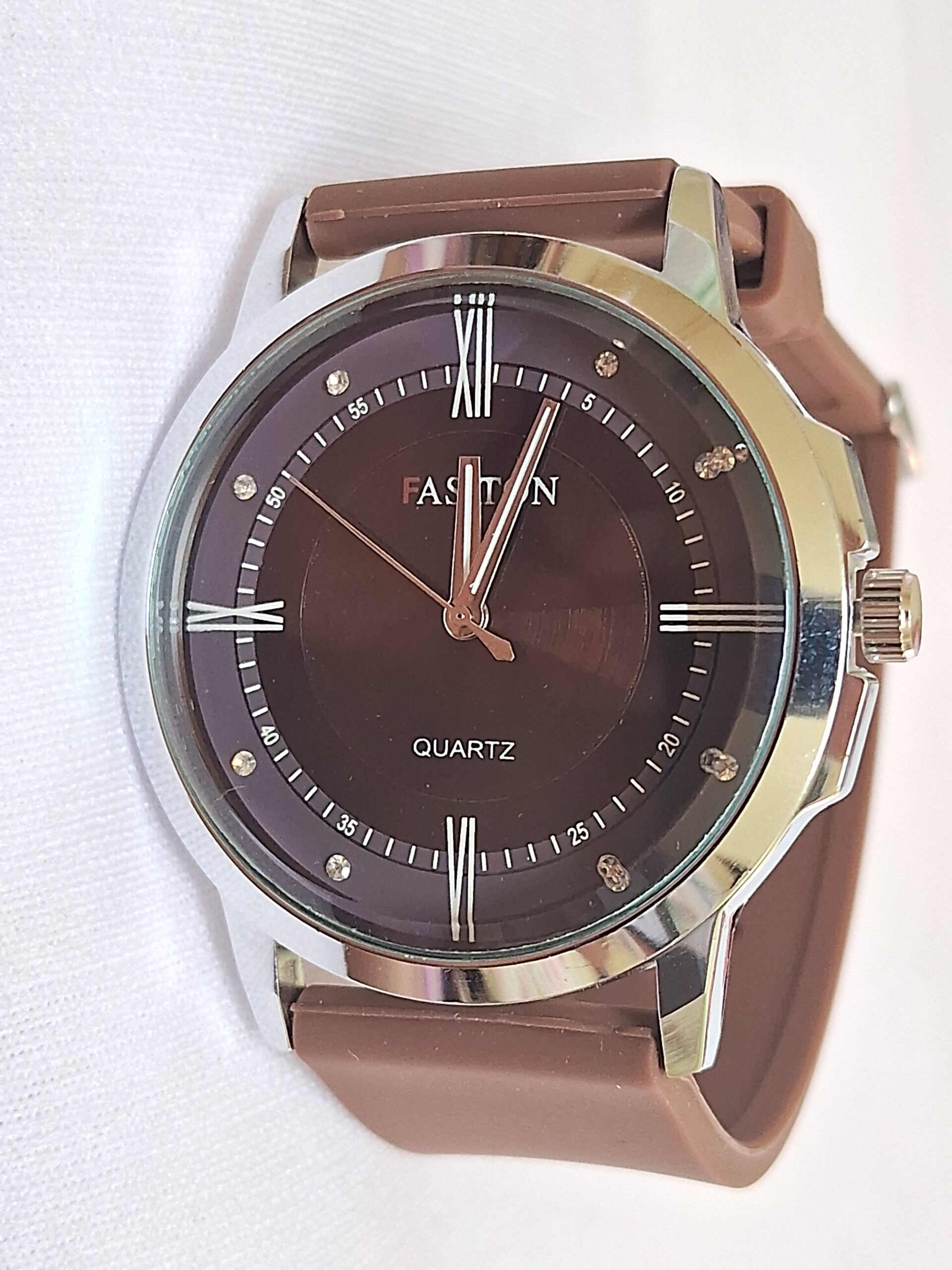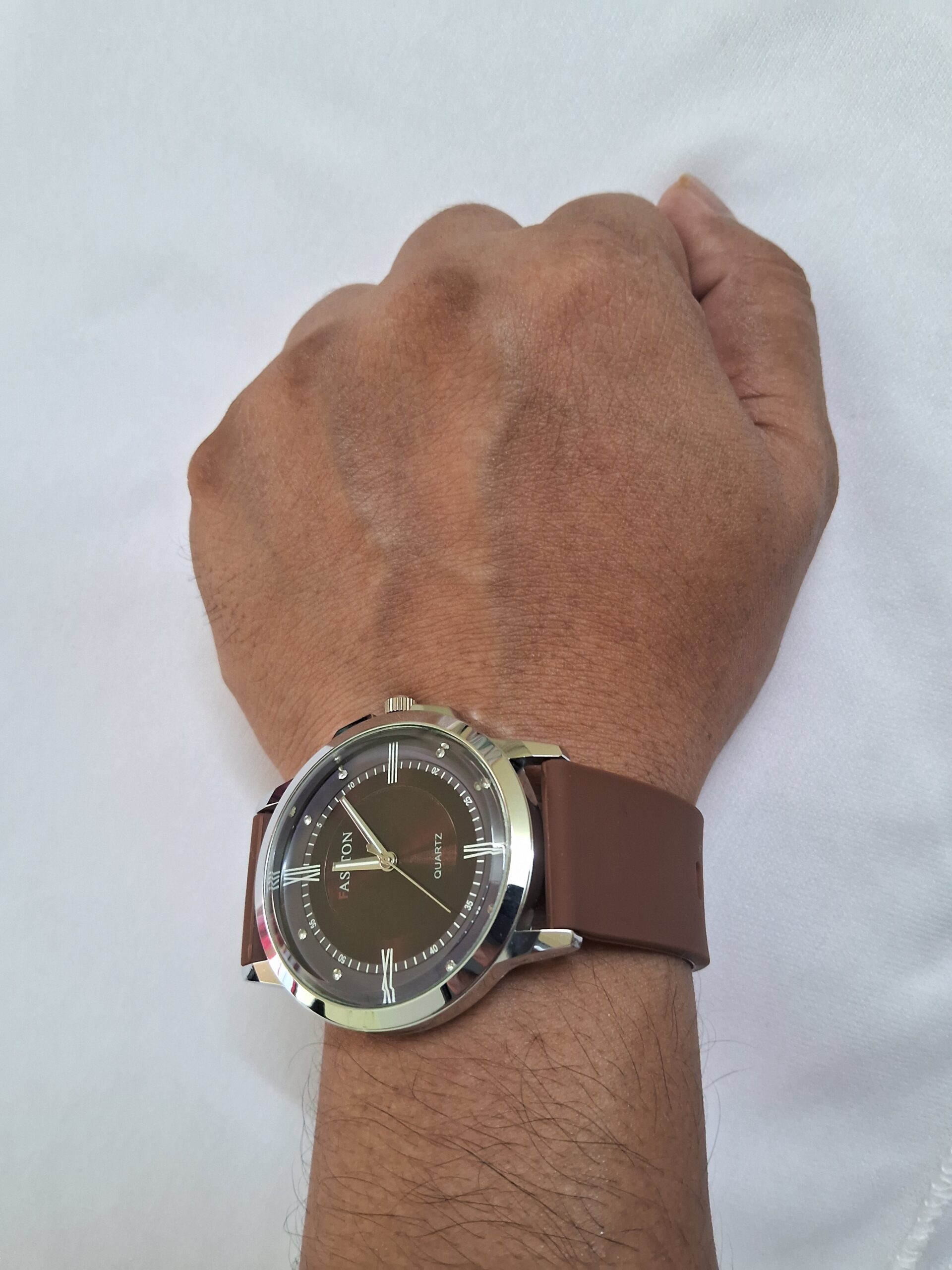 Product Title – Analog Wrist Watch for Men and Women |Round Silver Dial Brown Slim Strap
