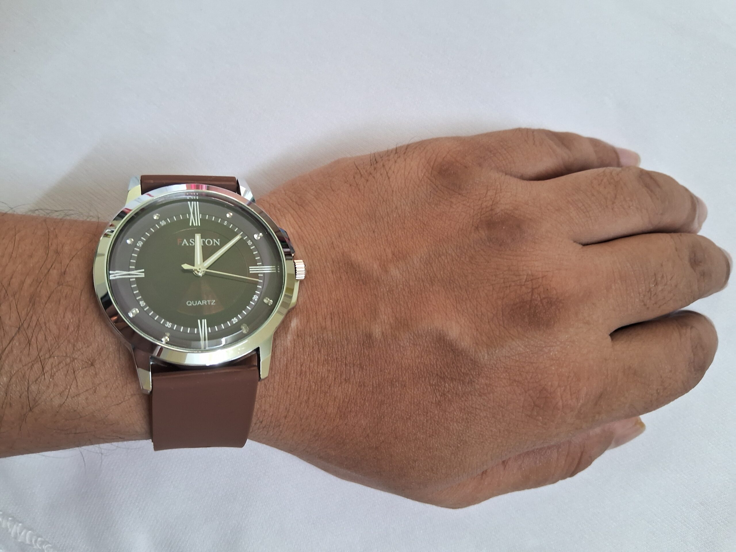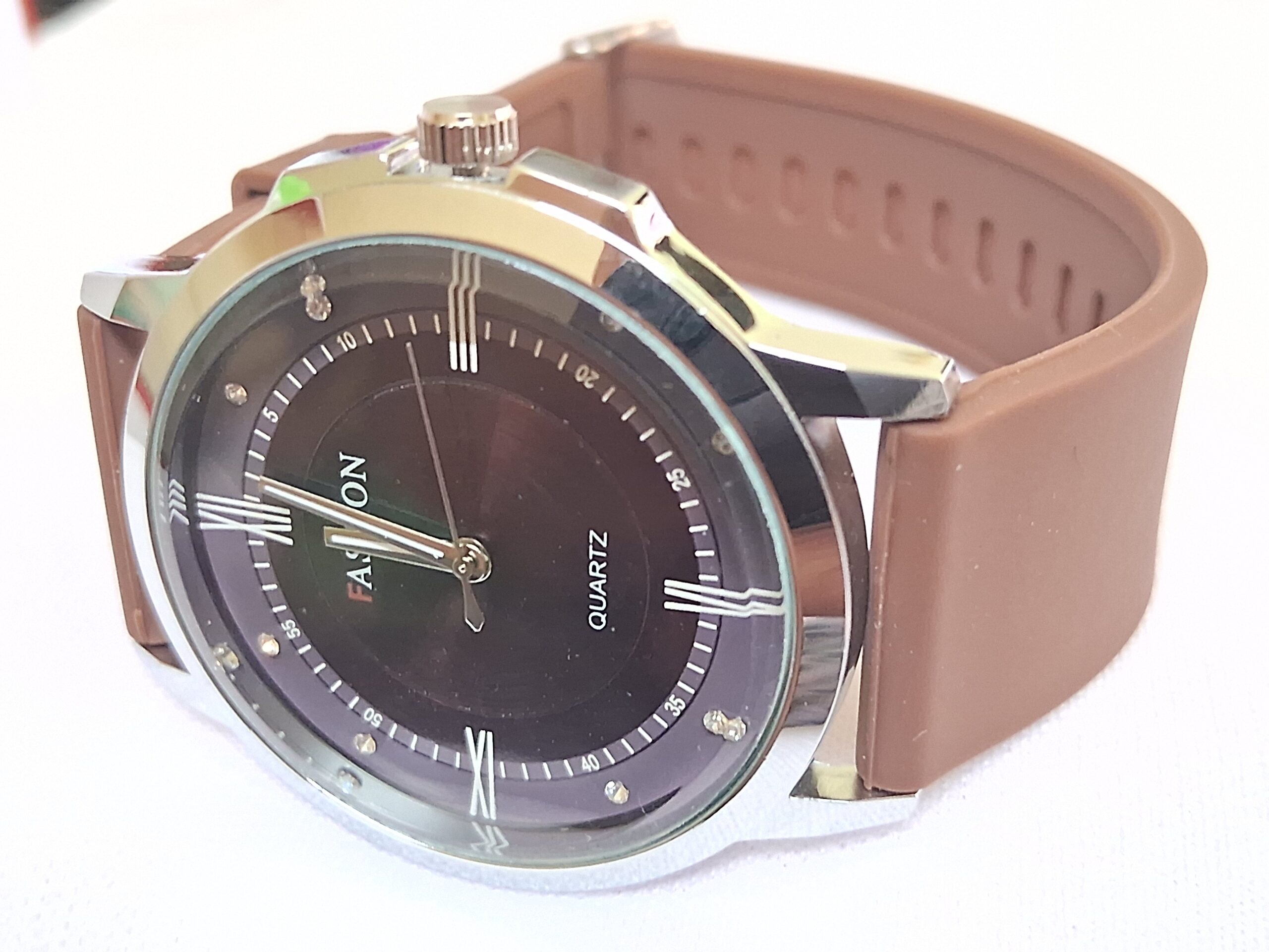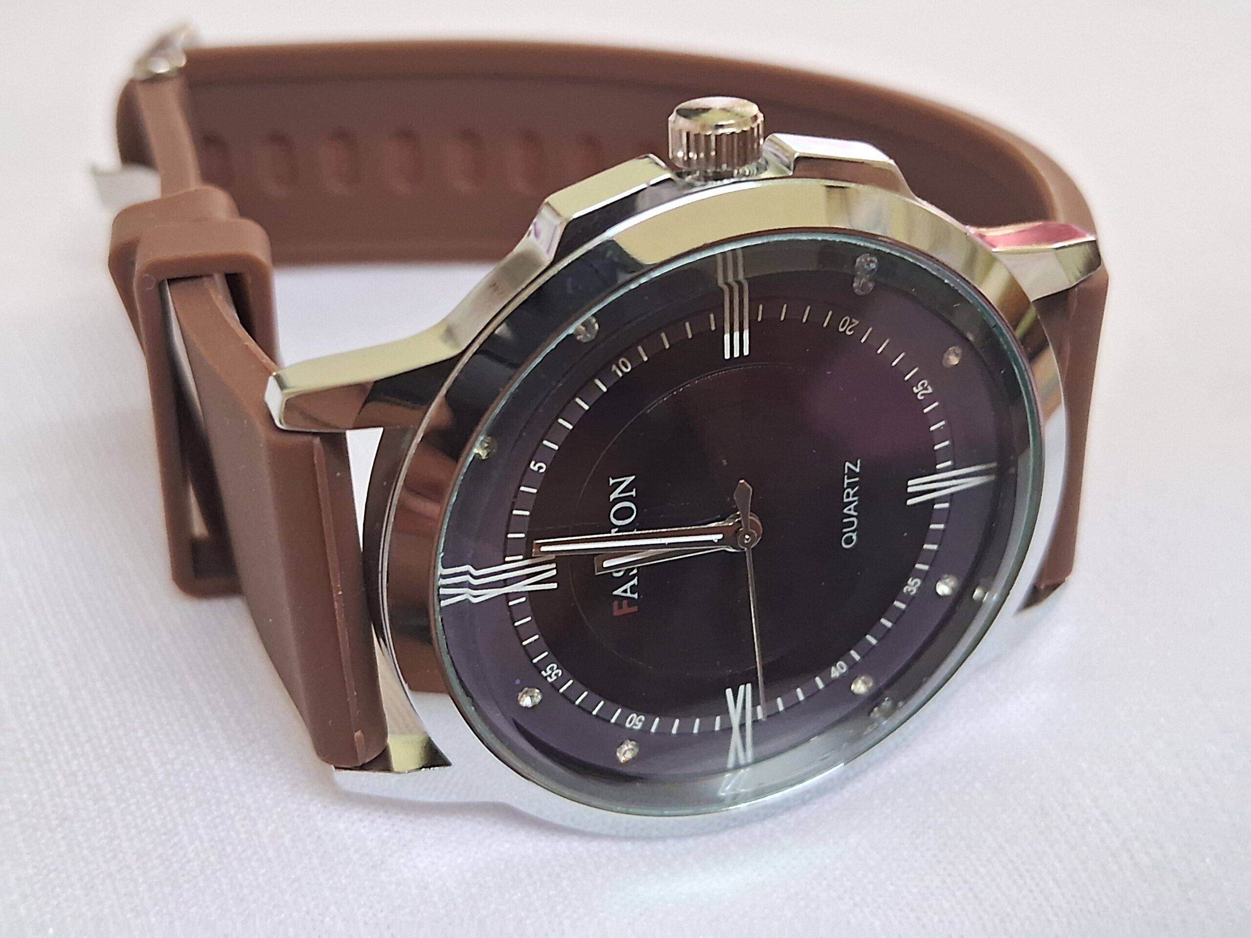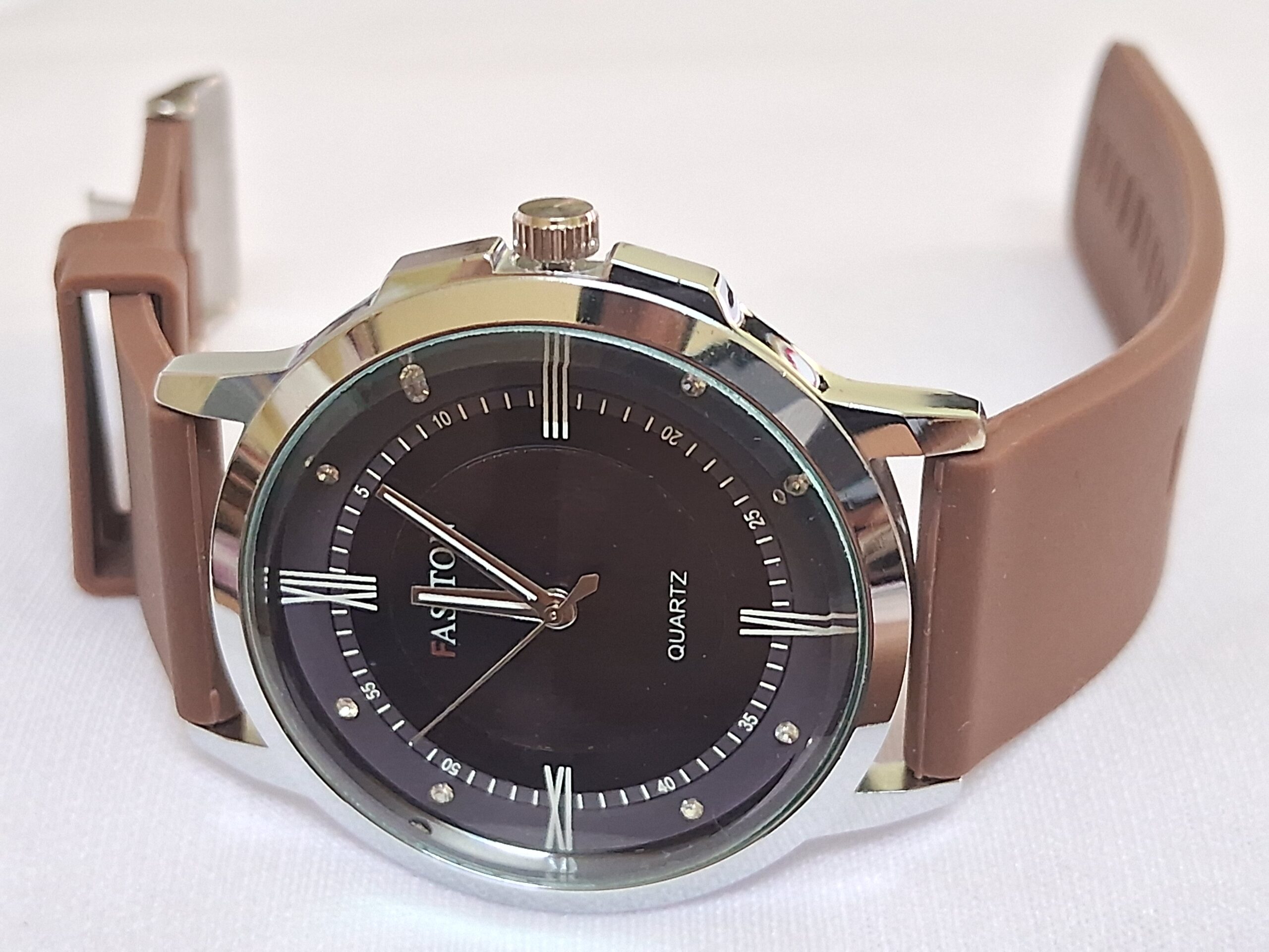 Product Title – Analog Wrist Watch for Men and Women |Round Silver Dial Brown Slim Strap