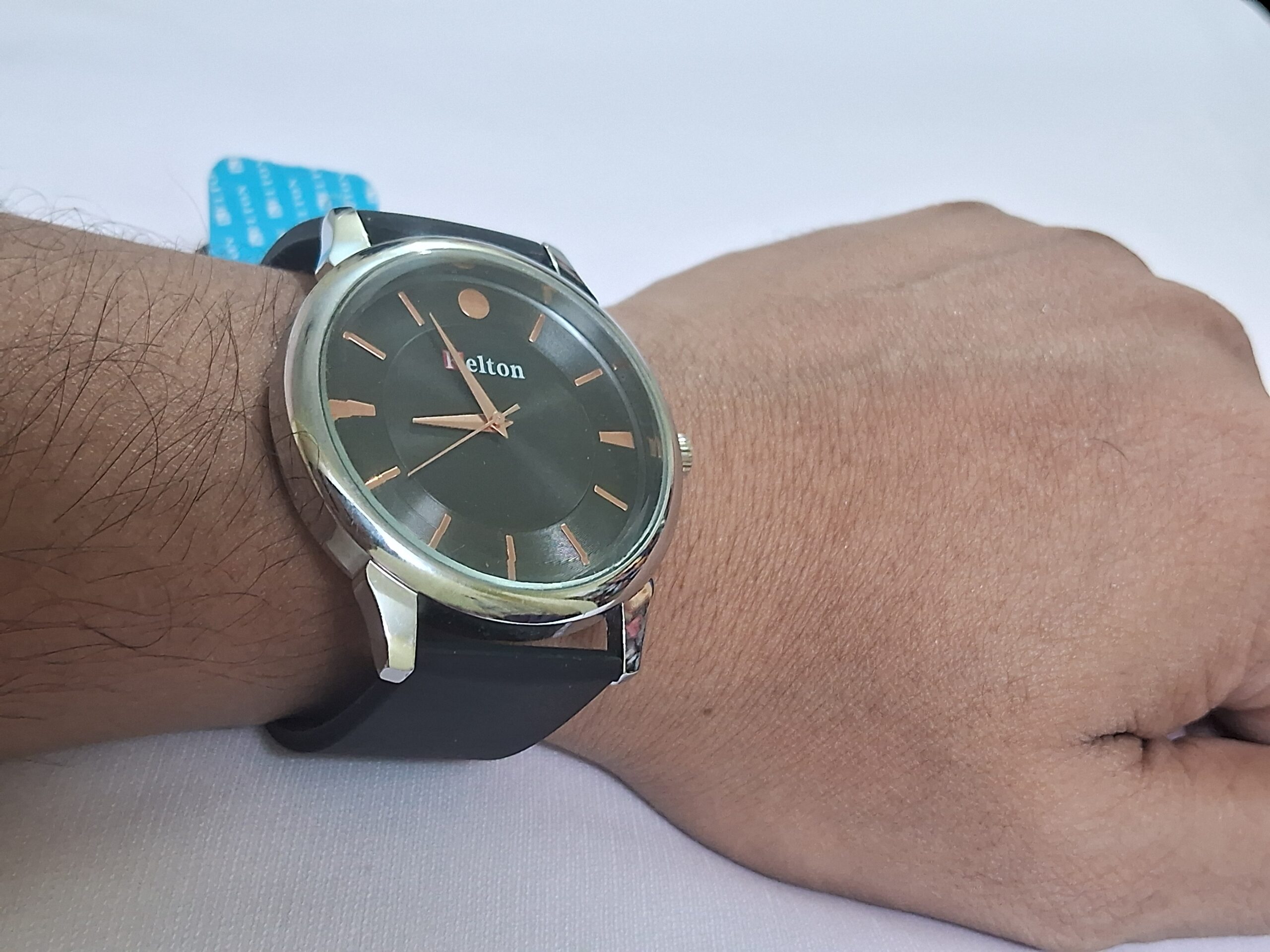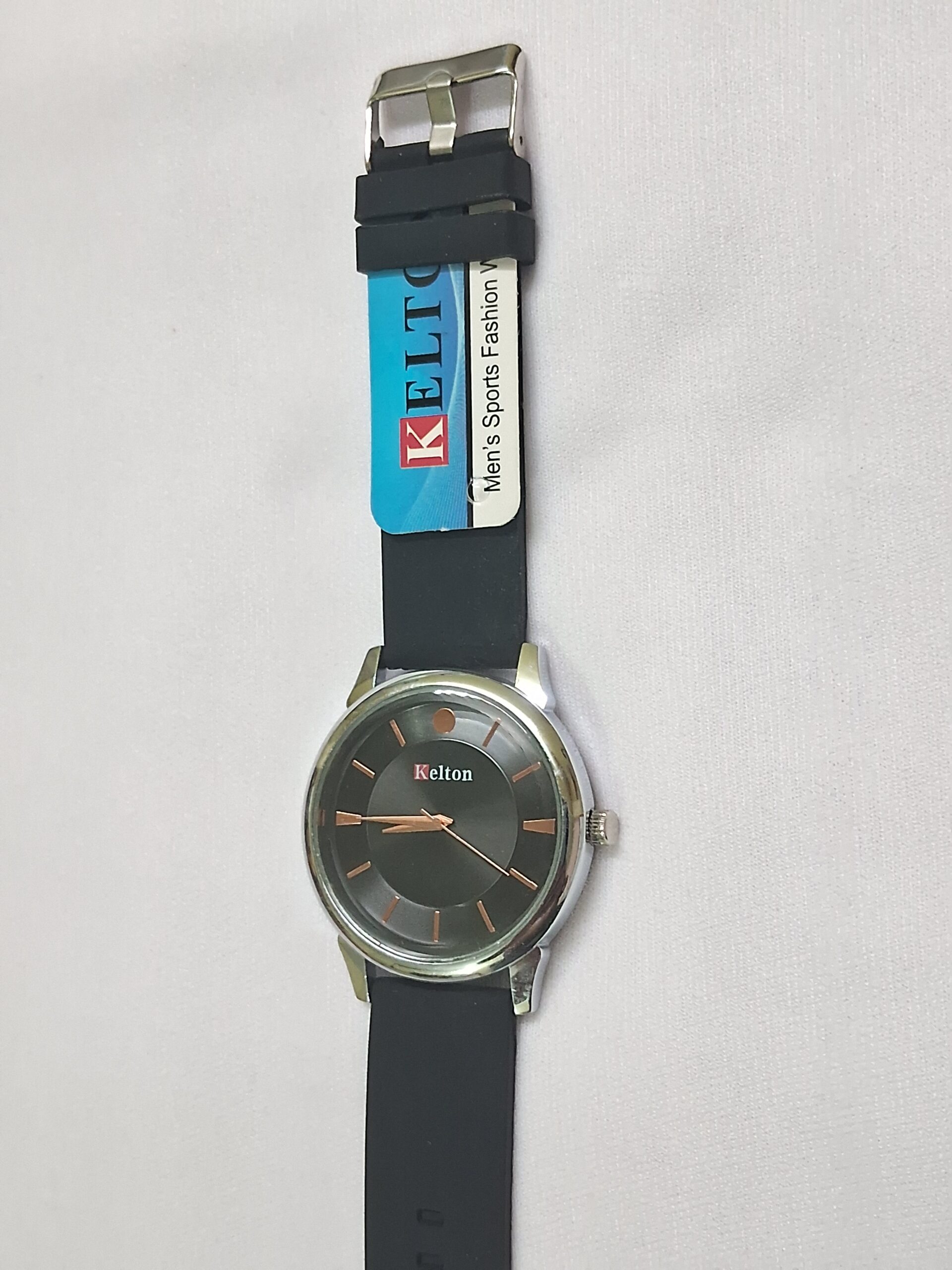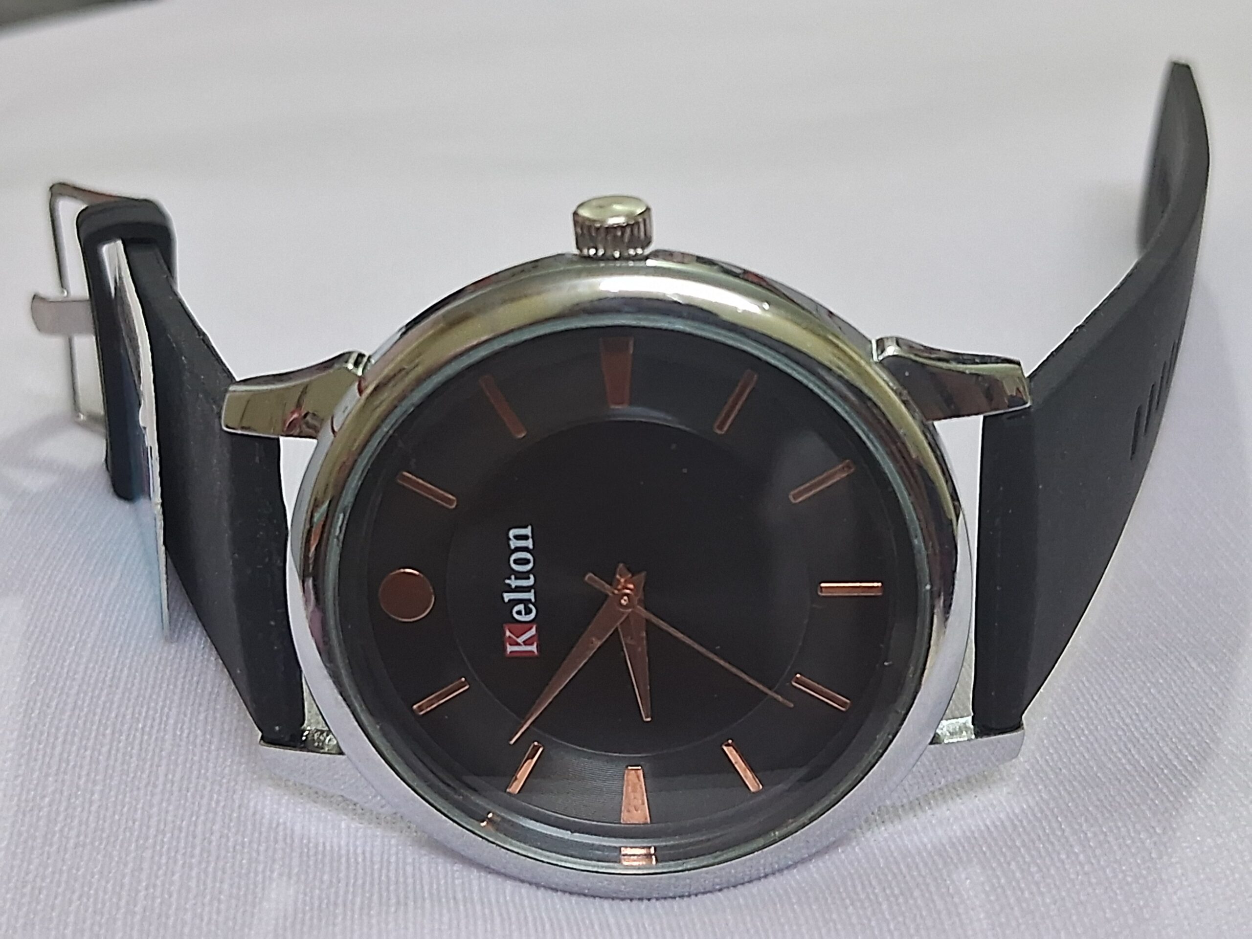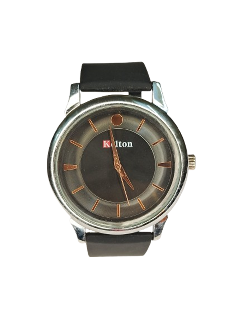 Product Title – Analog Wrist Watch for Women and Men | Round Silver Black Dial and Black Rubber Strap