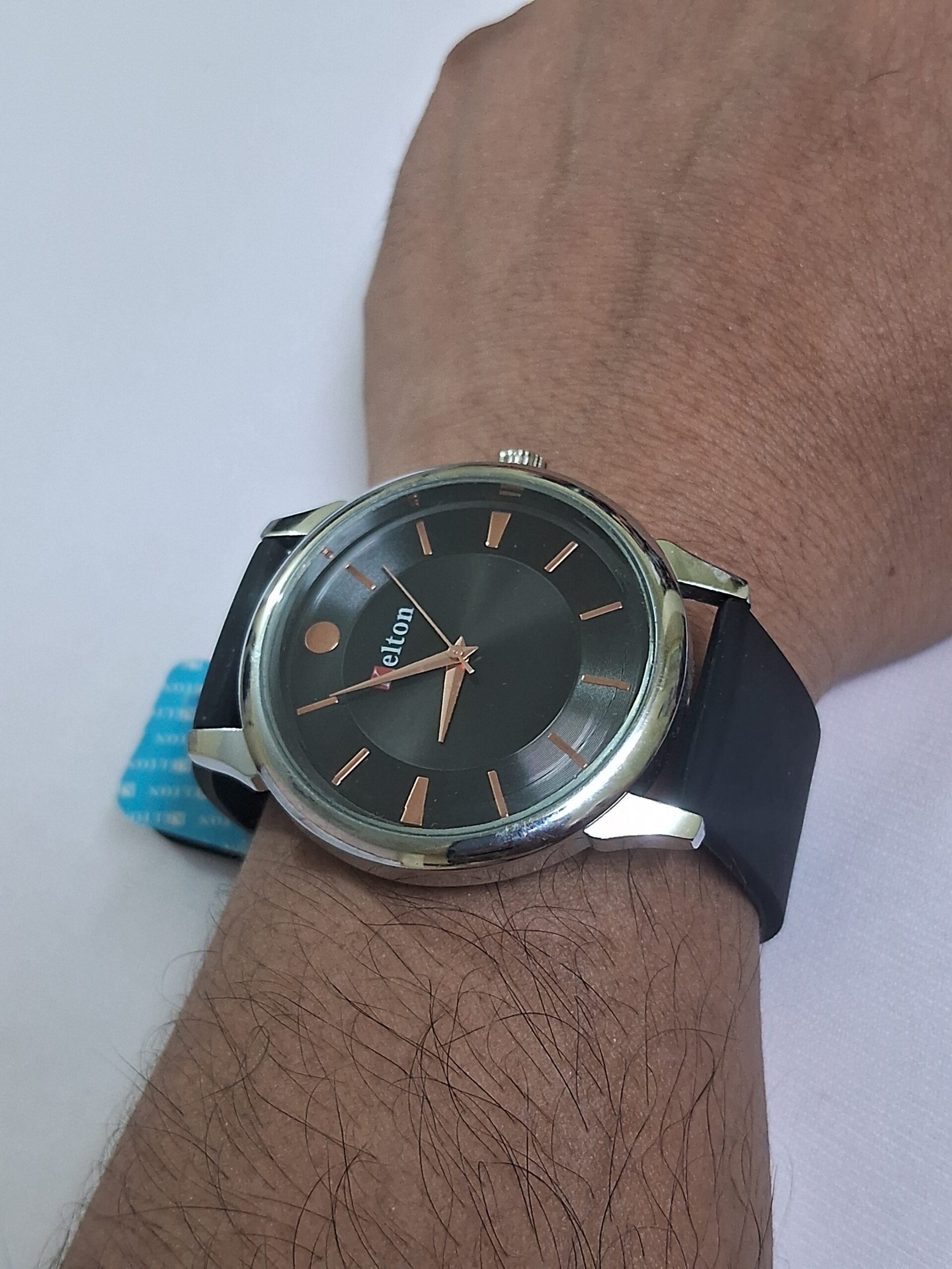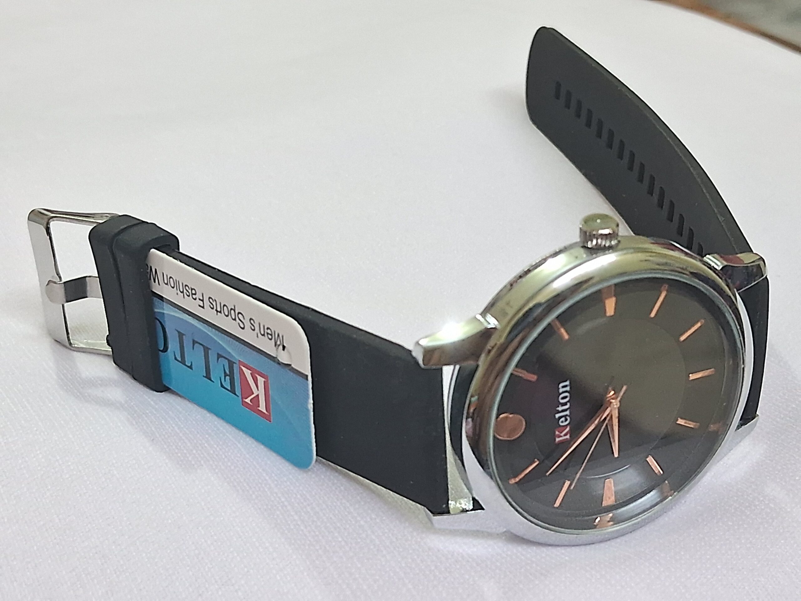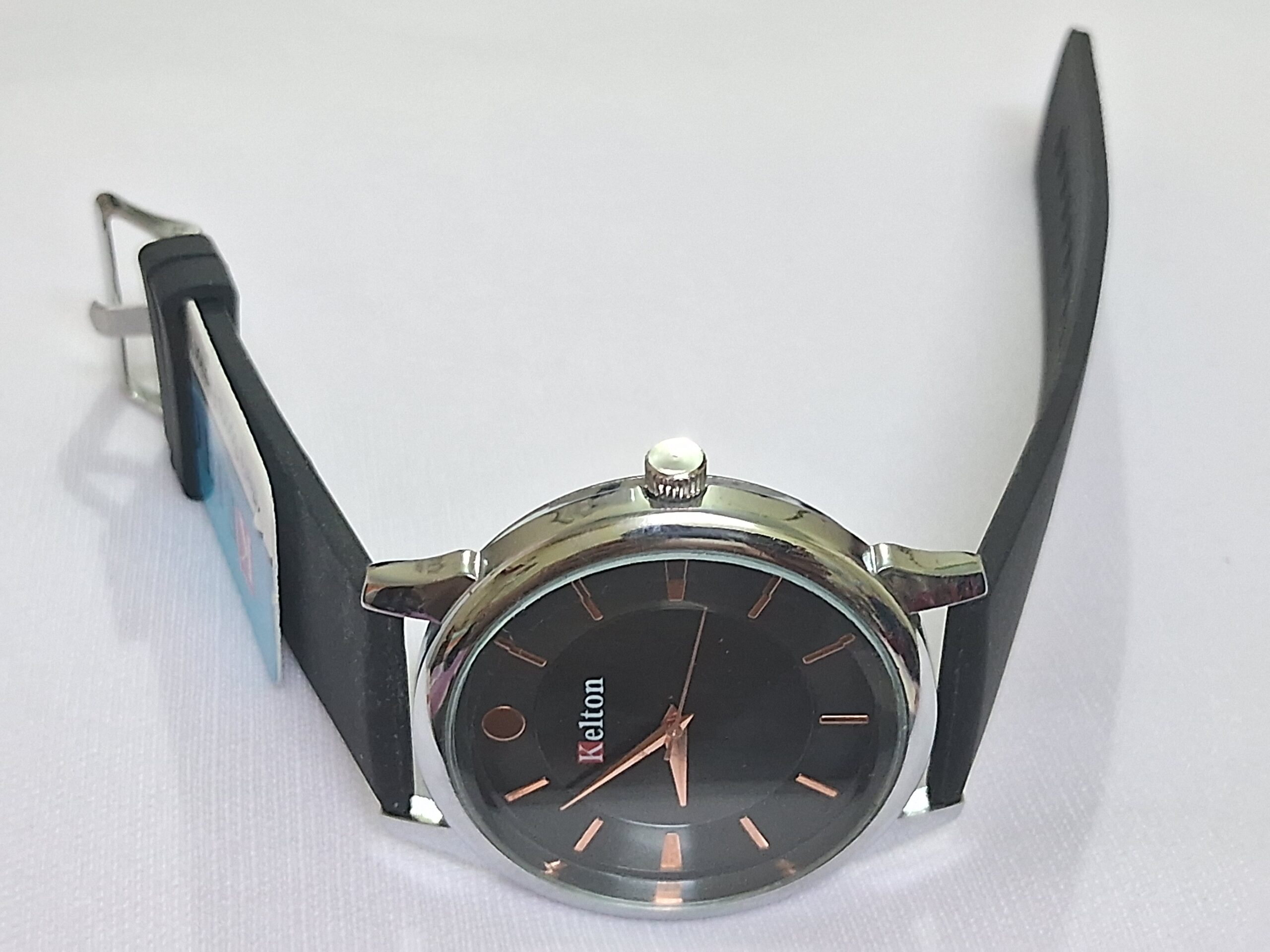 Product Title – Analog Wrist Watch for Women and Men | Round Silver Black Dial and Black Rubber Strap